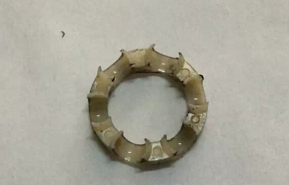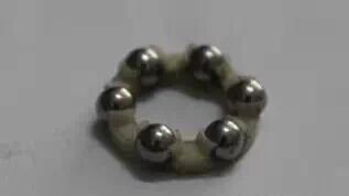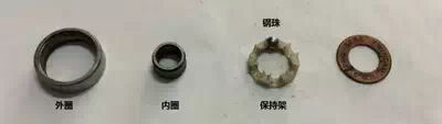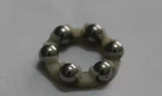 这下我们就得到一个保持架、一个钢珠彻底裸露的轴承。接下来的就是把钢珠拨到一起把内圈取下。