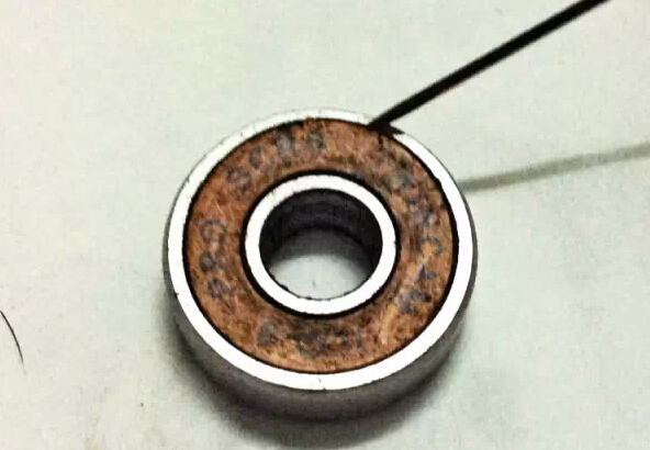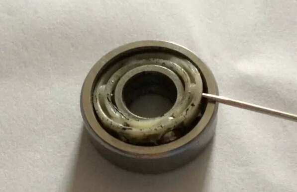 就像这样,去除防尘盖后,我们翻转轴承,从背后下手。