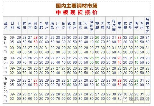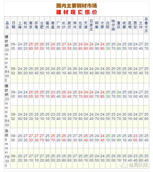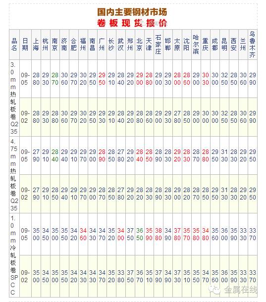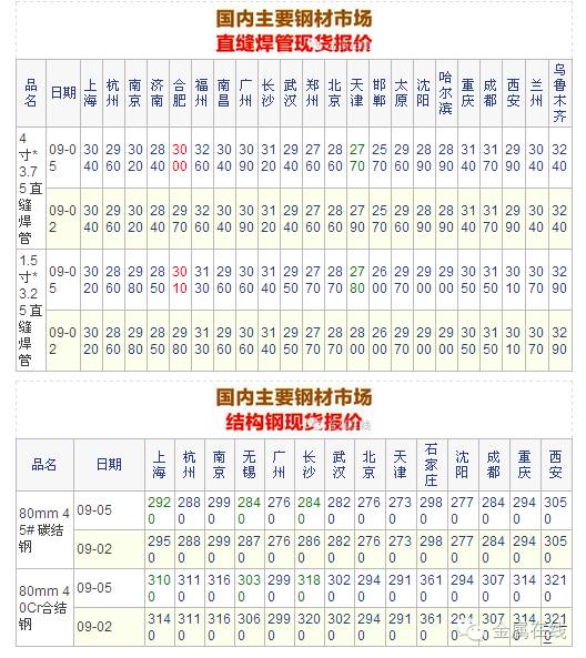核心提示:中国筛分机械网讯9月5日全国主要城市钢材价格汇总来源:金属在线