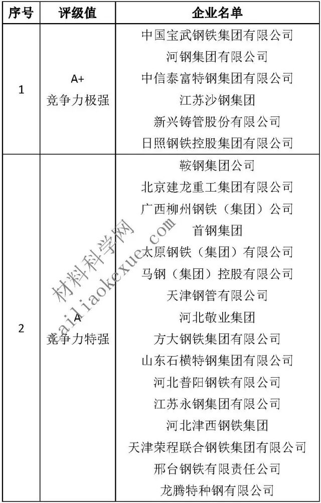 冶金工业规划研究院院长李新创在发布评级结果时表示,全国共有500家钢铁企业,本次参与竞争力评级的111家钢铁企业,合计粗钢产量占全国总产量的85%,此次评级的竞争力要素框架体系分为企业基础竞争力、企业发展竞争力、企业经营绩效竞争力三大板块,据介绍今年还首次采用了产能利用率、智能化程度等指标。