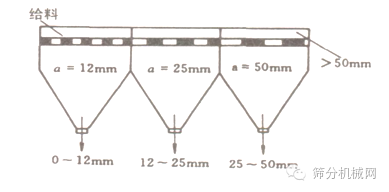 1)、由粗到细的筛序:将不同筛孔尺寸的筛面重叠起来,各层筛面由上到下,筛孔尺寸则由大到小。