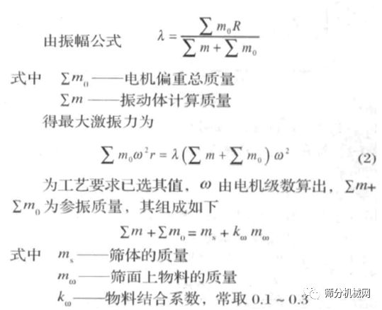 由式 2 计算出最大的激振力必须在所选的电机合成激振力的范围内。