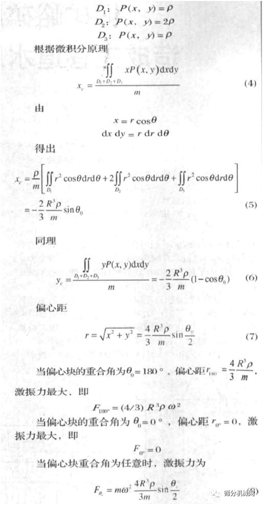 m为两偏心块的质量,ρ为偏心块材料的面密度(单位kg/ m2),R 为偏心块的半径,θ为两偏心块的重合角 (图中阴影部分),